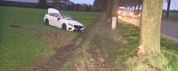 nach rechts von der Fahrbahn ab und kollidierte mit einem Baum, einer Laterne