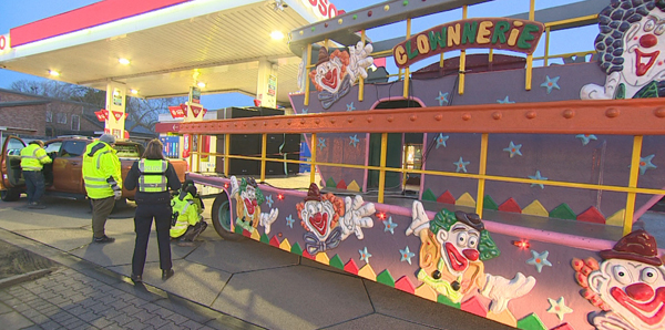 Schluß mit Lustig. Das gilt über die Karnevalstage für die Karnevalisten der Gesellschaft Clownnerie. Die Belgier waren mit ihrem Gespann am Samstagabend in Goch unterwegs und wollten an einer Tankstelle nachtanken. Dabei fielen die Karnevalisten der Polizei auf. Bei der Kontrolle wurde festgestellt dass der Karnevalswagen gar keine Bremsen hat und nur von einem PKW gezogen wurde. Bei einer stärkeren Bremsung hätte der 6 bis 7 Tonnen schwere Anhänger den PKW einfach nach vorne geschoben. Auch weitere Ungereimtheiten veranlassten die Polizei den Anhänger sicherzustellen. Der PKW durfte den Hänger nicht weiterziehen. Ein Bergeunternehmen wurde zum Nordring in Goch bestellt. Dies koppelte den Hänger an und brachte ihn zu eienm Sicherstellungsgelände. Aufgrund der festgestellten Mängel wird dieser Karnevalswagen am Festtrubel nicht mehr teilnehmen können. Augenzeugen hatten berichtet dass das Gespann schon zuvor an einem Stopschild in Goch Asperden nicht zum Stehen kamen.