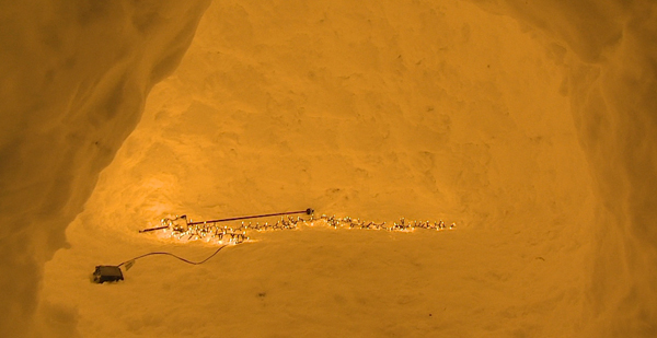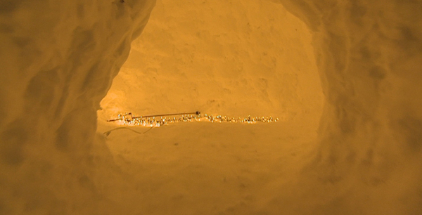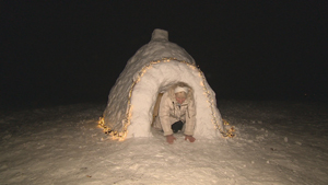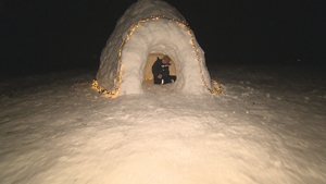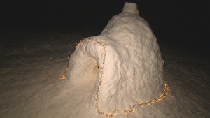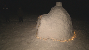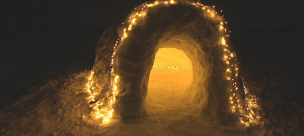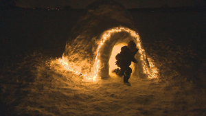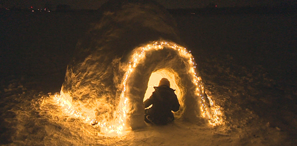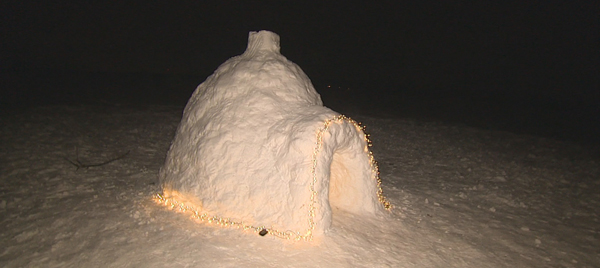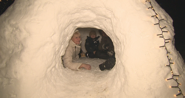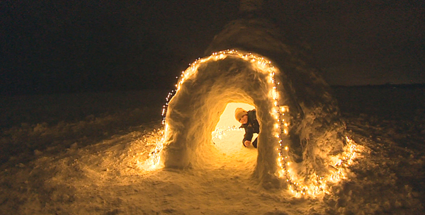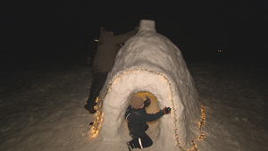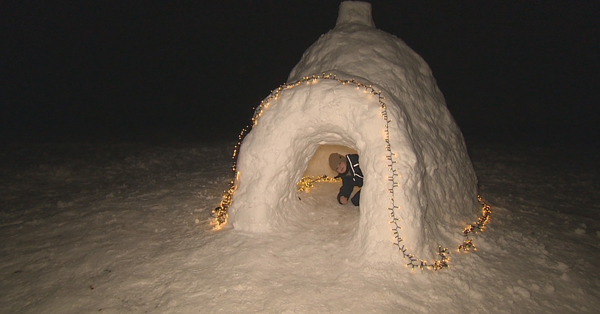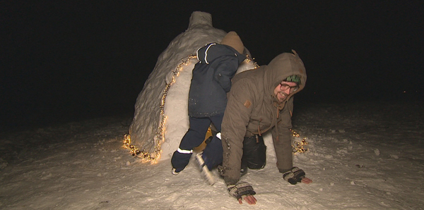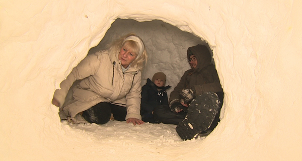 Familie baut sich Schnee-Iglu
